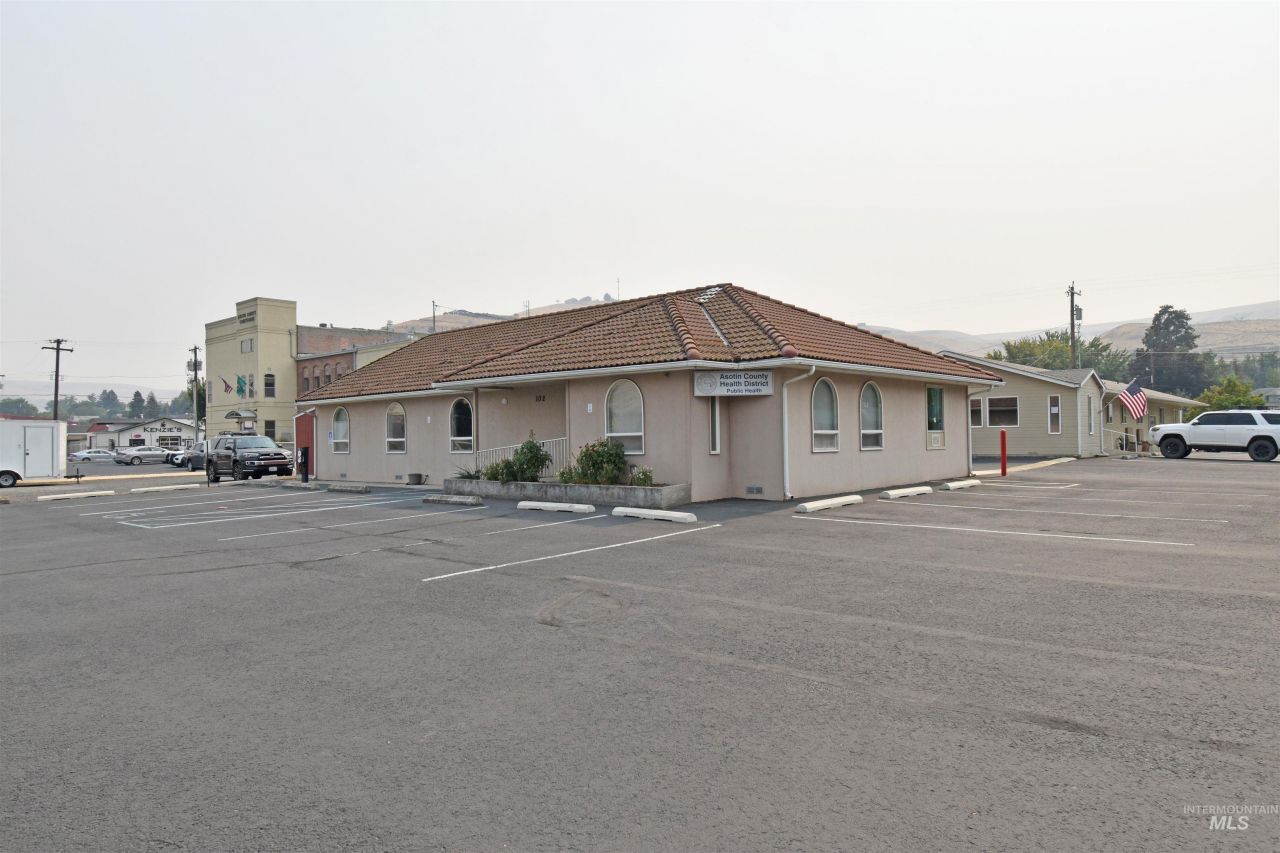 Fantastic commercial building on First Street and Cleveland in Asotin. Uniquely constructed with no bearing walls on the interior for easy remodeling to suit a spa, doctor, accountant, dentist, architect, etc. Laundry area, two bathrooms, reception area with cabinets and push-out drawer with microphone for contactless delivery if needed. Back entrance for staff, ramp at front entrance with zero-step for easy access. The parking area lot closest to HWY 129 has been a long-term rental to the county for their parking needs.
